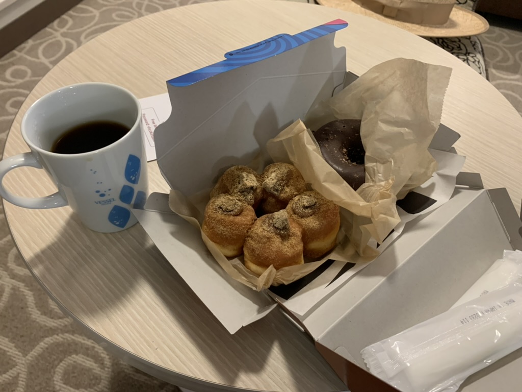 ドーナツは、いつもは食べないのですが、閉店間際に行ったら、割引してくれたので、購入してホテルで食べました😋✨
