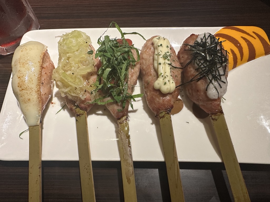 Juli「焼鳥・串カツ&飲み放題 たま」も、ホテルでもらったクーポンにあったから行ってみたんだ。”生つくね”が名物なんだよ♪美味しかった〜!