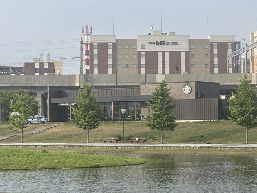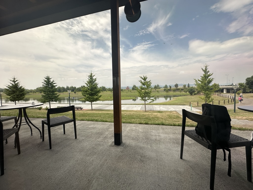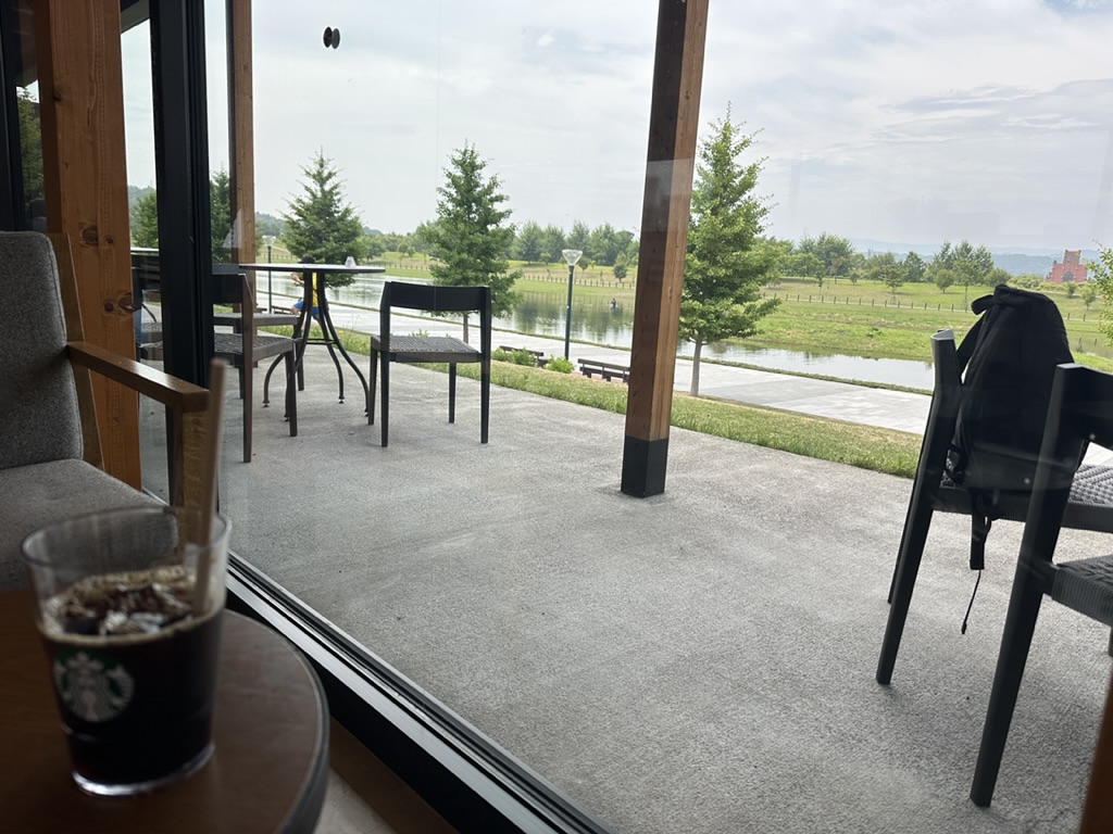 Juli「スターバックス 旭川北彩都店」は、目の前にあさひかわ北彩都ガーデンの美しい景色が広がる癒しの空間だよ!