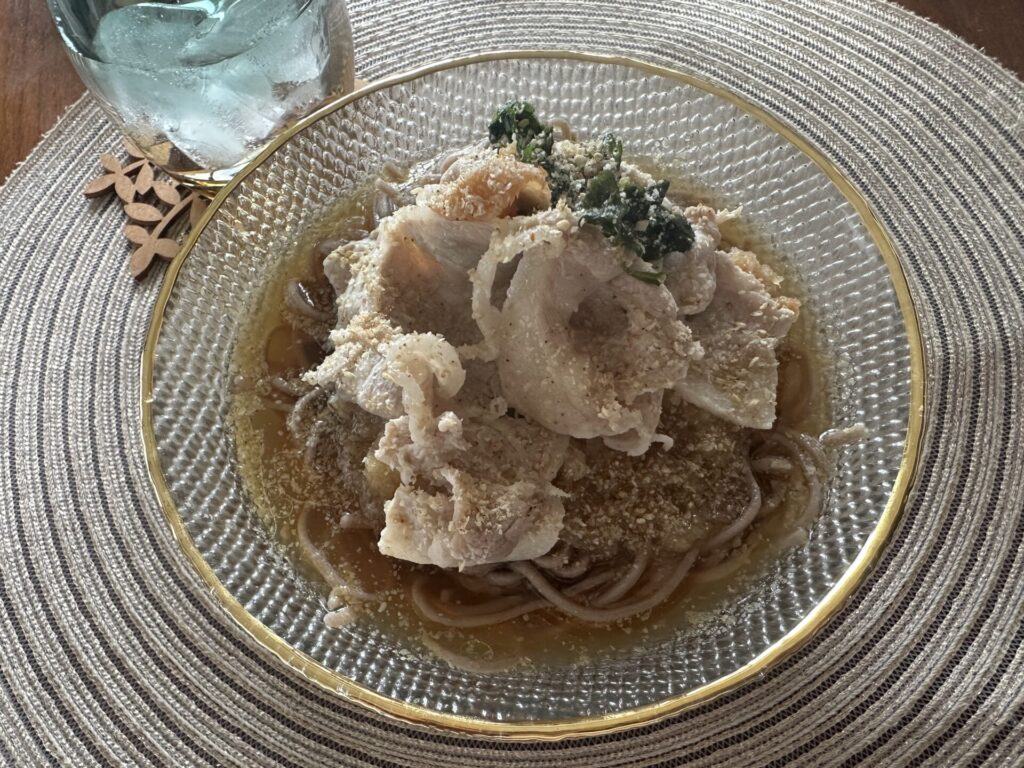 ダイエット中に、豚しゃぶおろし蕎麦はよく作るのですが、このレシピのポイントは麺つゆを使ってない!