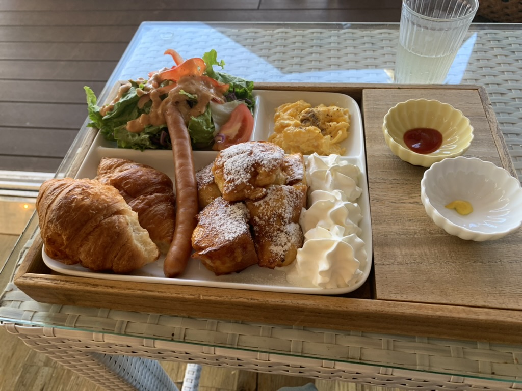 サラダやスクランブルエッグ、ソーセージにクロワッサンまでついてボリューム満点です✨