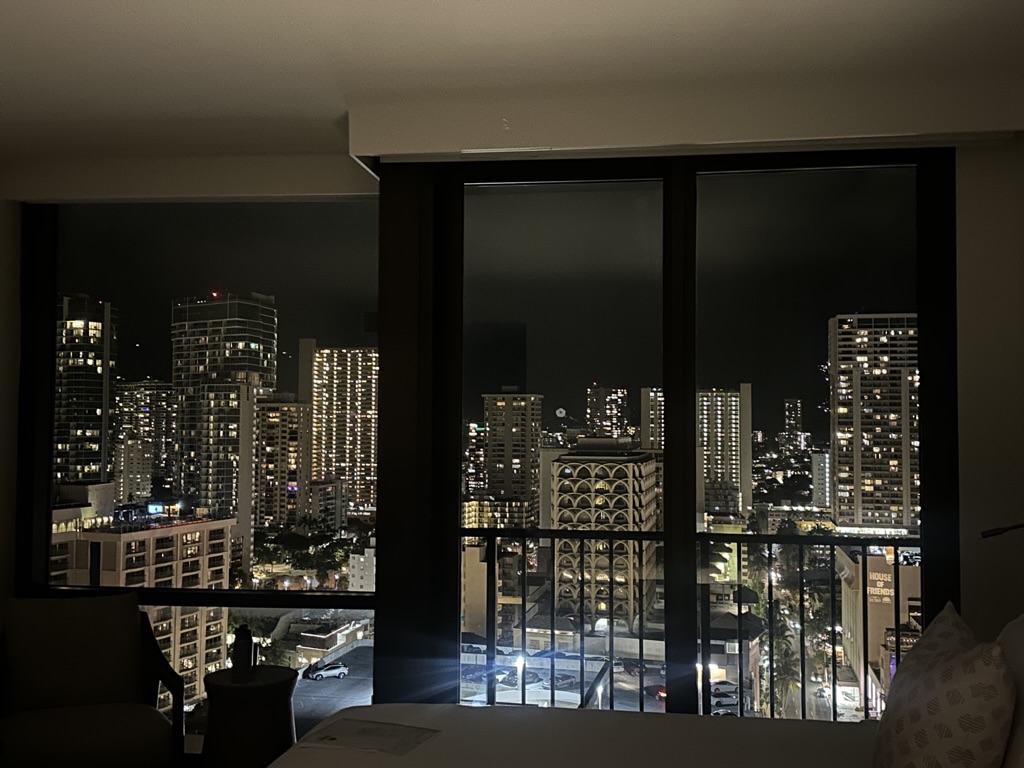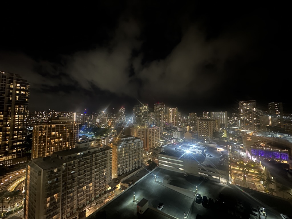 ワイキキの街も明るく照らされています。