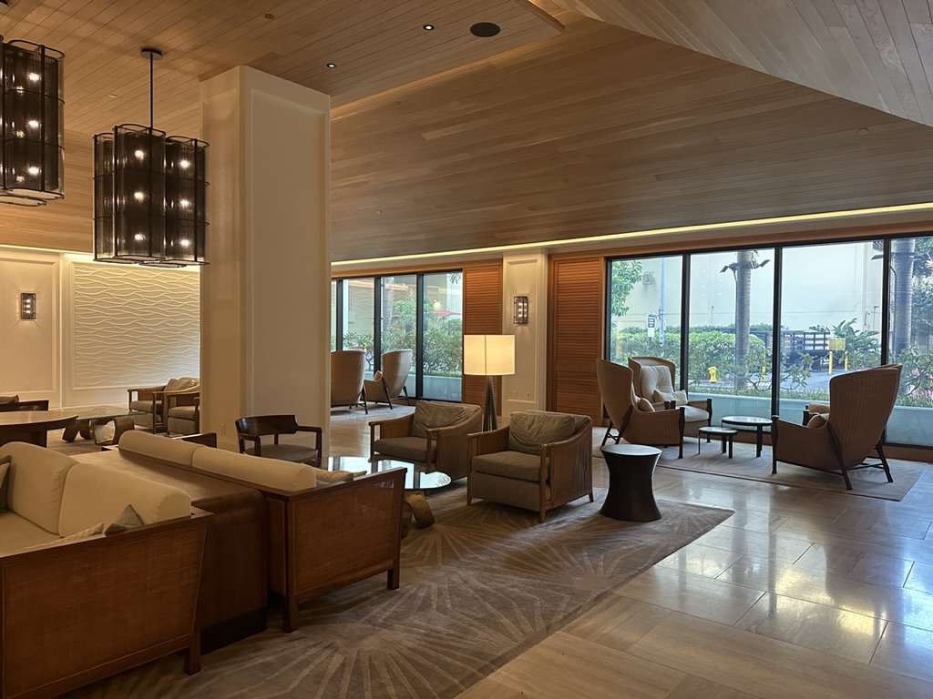 シェラトン・ワイキキとも近くて、反対側の入り口から入って、この通路を通るとロビーに出ます。