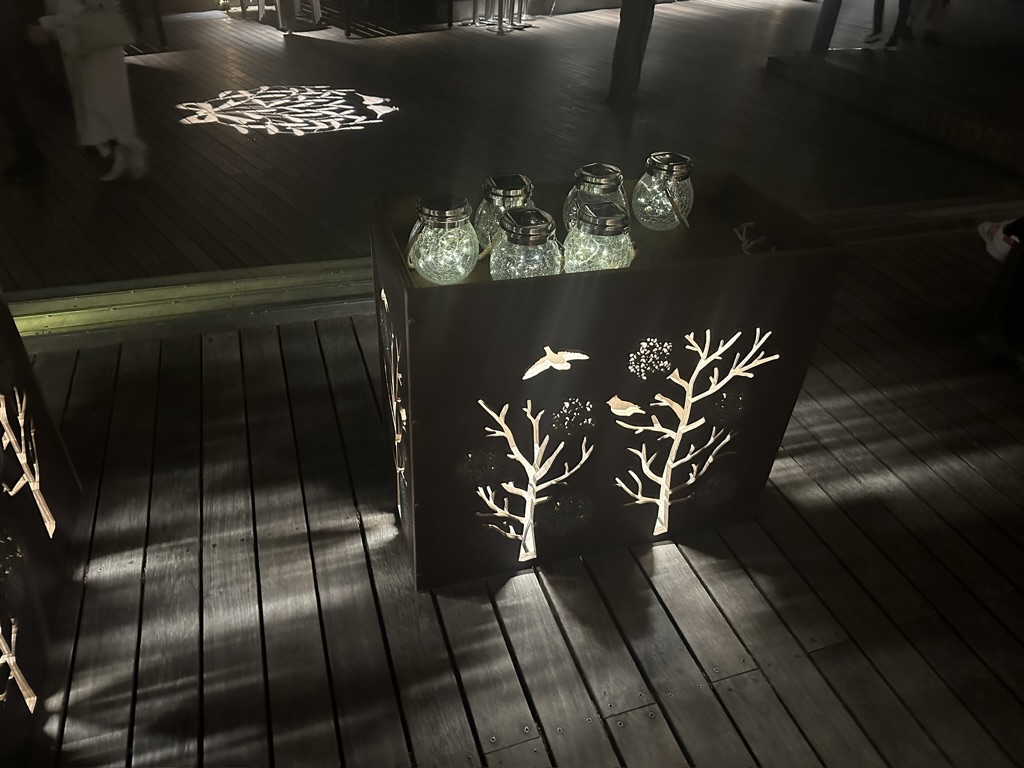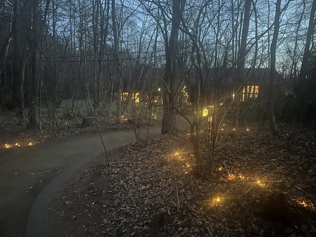うっすら暗くなりかけた頃、森に明かりが灯り始めました。