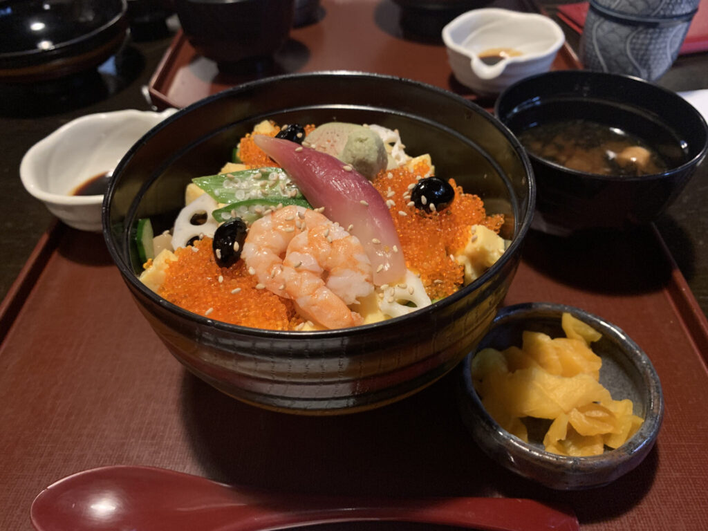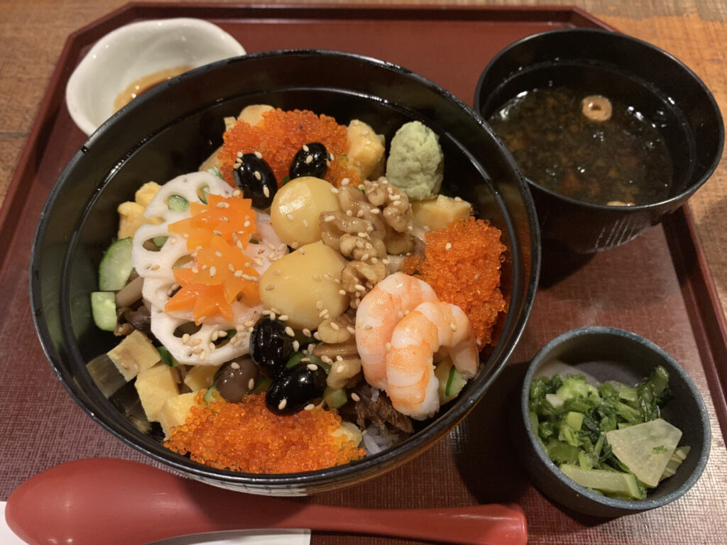 こんなに美味しいちらしは初めてで、旬の野菜やとびっこ、海老や黒豆…口の中に入れると美味しさが溢れ出す✨ 色んな食感も楽しめて、さらに穴子の存在感も抜群でフワフワで美味しい!