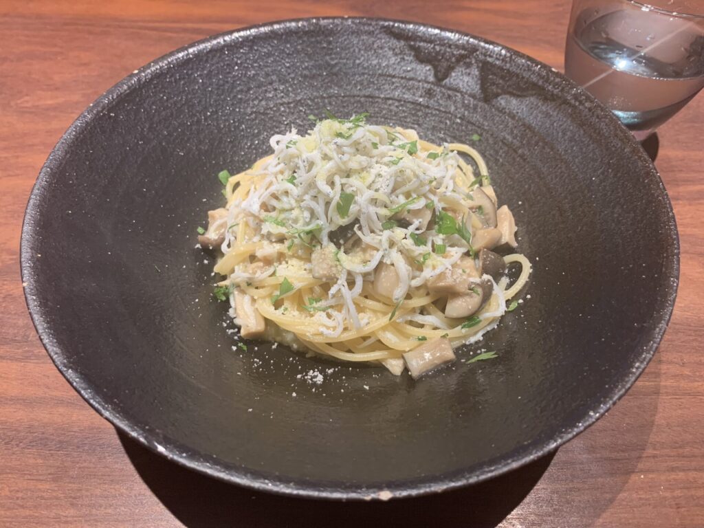 パスタは、しらすの塩味が程よくて、しめじソースとペコリーノチーズの旨味も程よく感じられて、とても美味しかったです✨