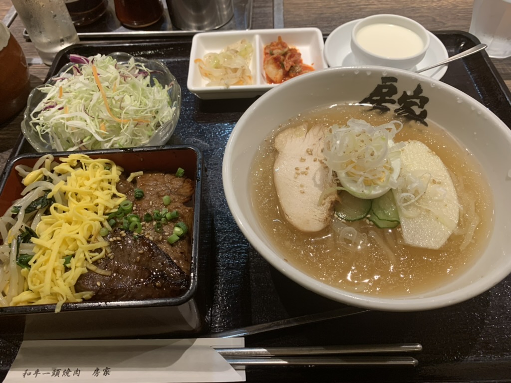 Juli「房家」も、まぐろ人別庵の次に多く通ったお店で、いつも食べるのが「冷麺御膳+焼肉ビビンバ」のセット!お腹いっぱいになるし、満足感が高いランチなんだよね♫