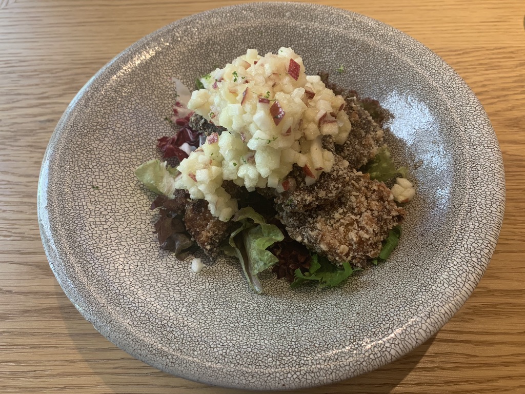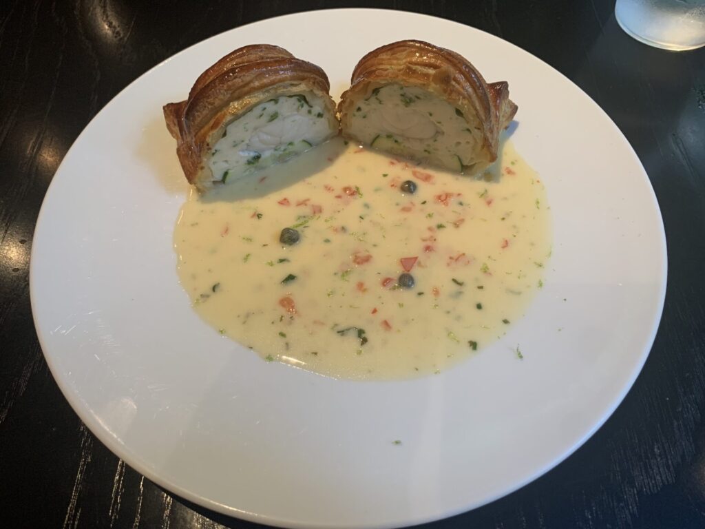 こんがり焼かれたサックサクのパイに柔らかなフグの身がぎっしり詰まっていて、絶品ソースに絡めて食べると思わず声が漏れてしまうくらい美味しかったです💓