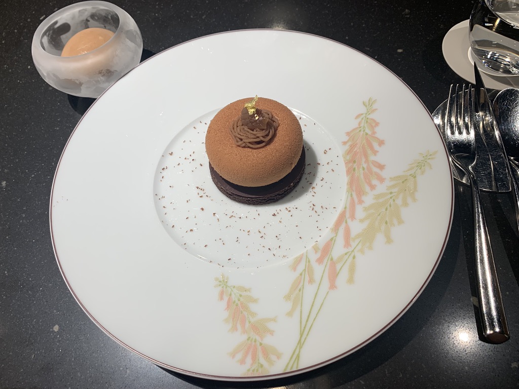 マーマレードとチョコレートの組み合わせは絶品✨とっても美味しかったのですが、デザートについてくるチョコレートソルベが、濃厚で驚きの美味しさでした!