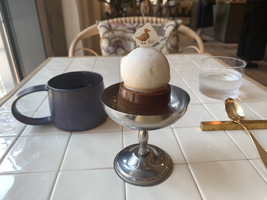 tealらしくアマゾンカカオを使ったチョコレートプリンにミルクアイスがのった絶対に美味しい組み合わせ💕