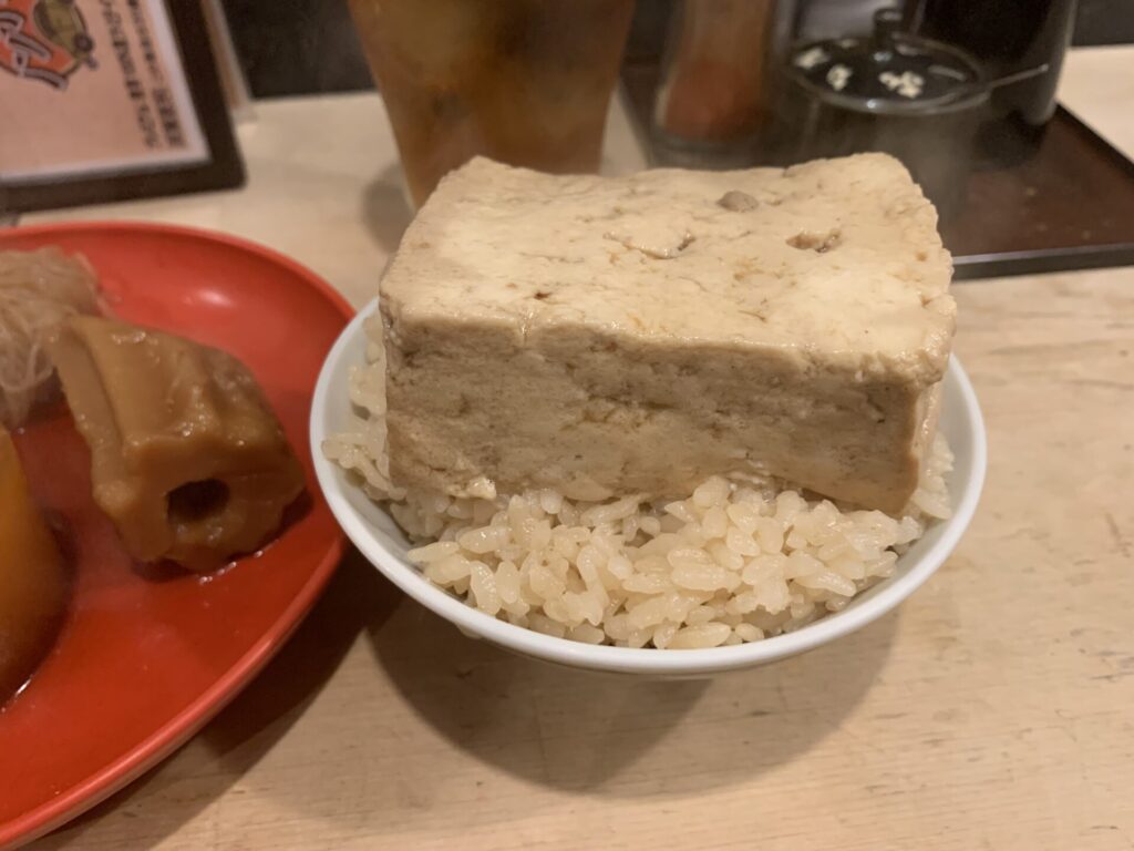 大きな豆腐がどーんとのっていて、旨さが凝縮されたおでん汁がたっぷりかかったご飯はこれだけで美味しい✨