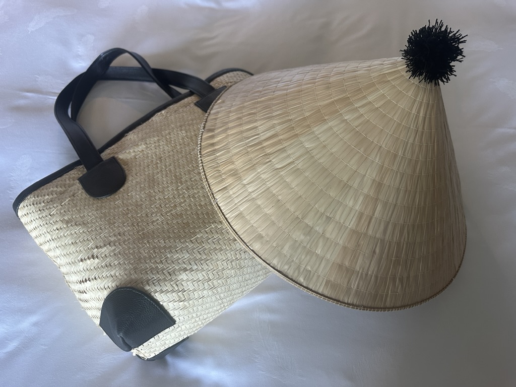 ビーチ行く用のカゴと帽子が可愛い
