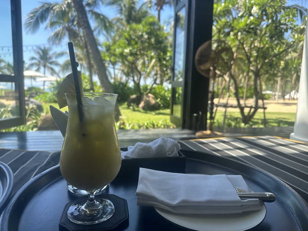 カクテルを飲むと、一気にリゾート気分が上がります。