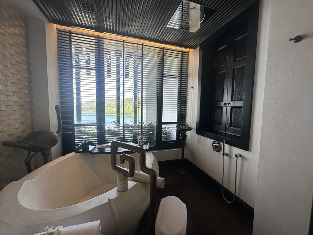 ・客室は山の斜面に造られていて、「Heaven(天国)」「Sky(空)」「Earth(大地)」「Sea(海)」の4つのレベルに分かれています。エリア間の移動にはケーブルカー「ナムトラム」か、バギーを利用します。