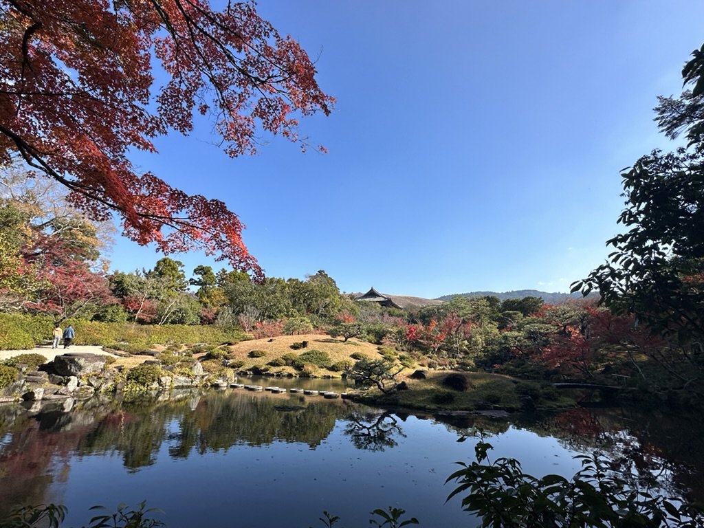 奈良公園も紅葉で美しかったけど、ホテルの近くに素晴らしい日本庭園があったんだよね!