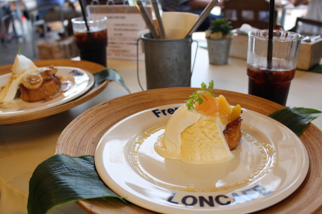 フレンチトーストもアイスとフルーツ、生クリームがのっていて、とっても美味しくて大満足です♫
