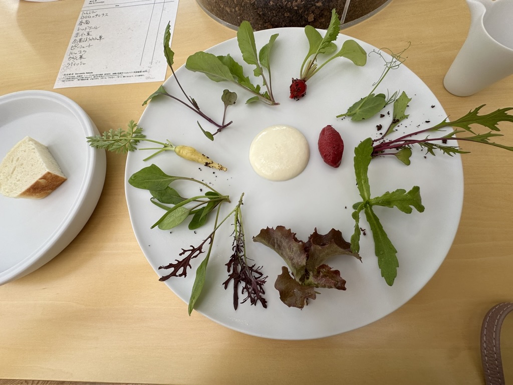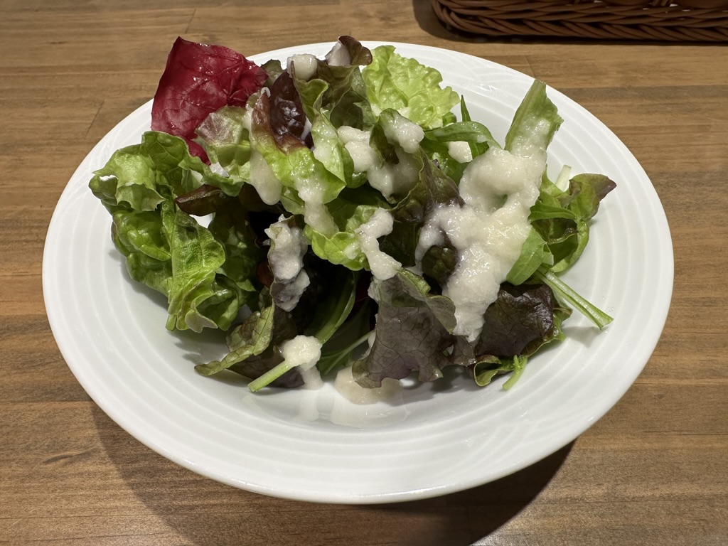 サラダのドレッシングも美味しいし、パンは「ひらみぱん」のパンなのですごく美味しい!!