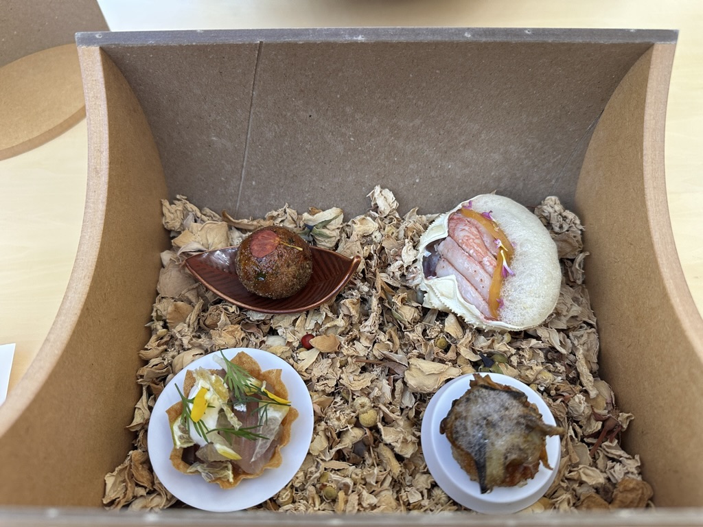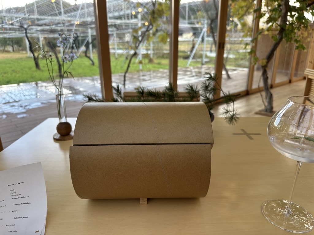 初めのお料理は、箱に入って出てきました。全く想像がつきません(笑)