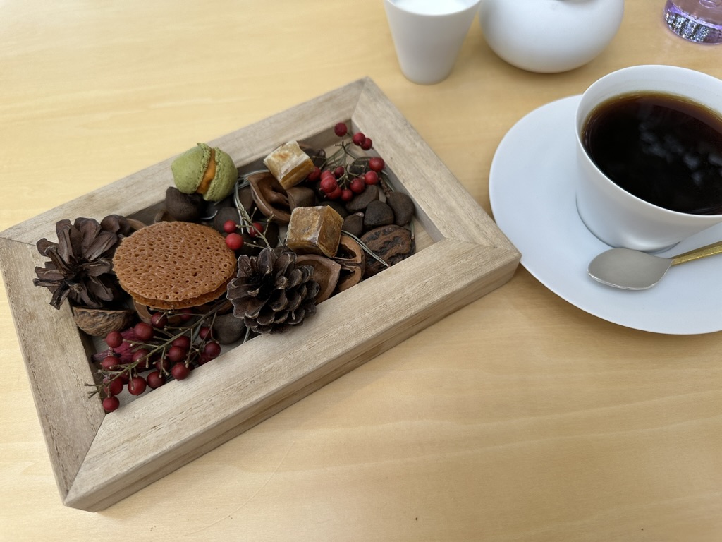 小菓子のクッキーやマカロンも秋らしい装いで、最後までとっても可愛い