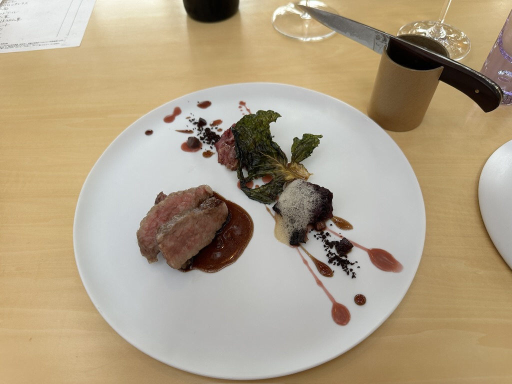 お肉料理は、紫キャベツを使った料理で、お肉も柔らかくて旨味が溢れる美味しさで、盛り付けもお洒落でした✨