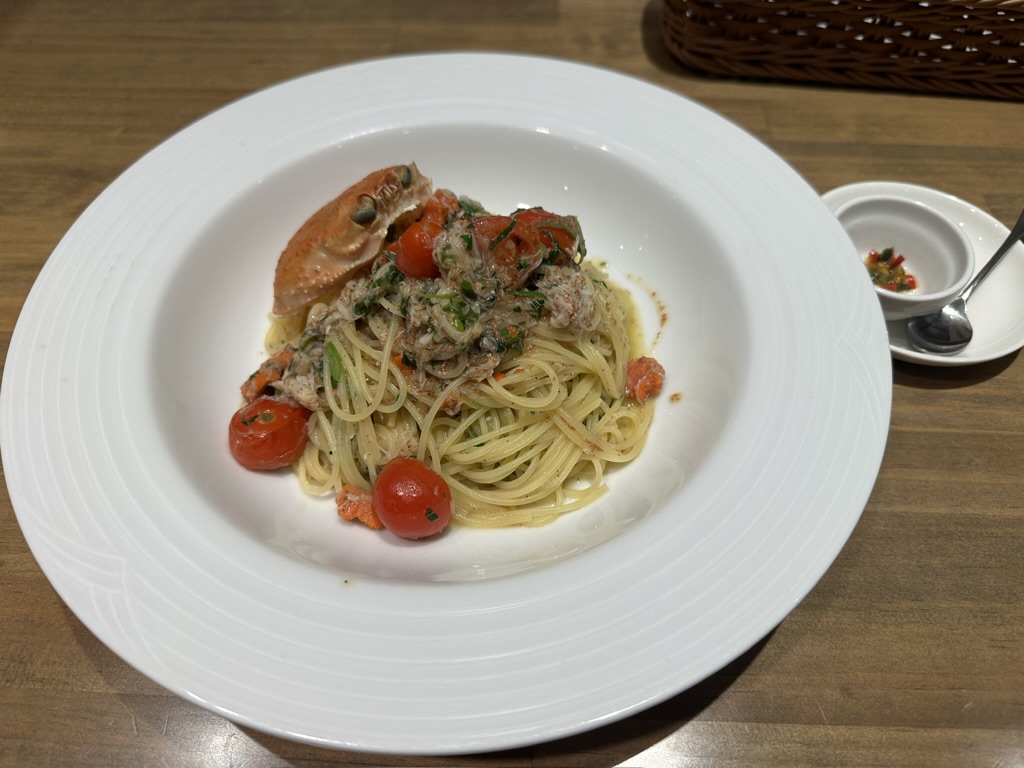 そして香箱ガニのパスタは、蟹の身もたっぷり入って、香箱ガニの内子のプチプチ感もたまりません!