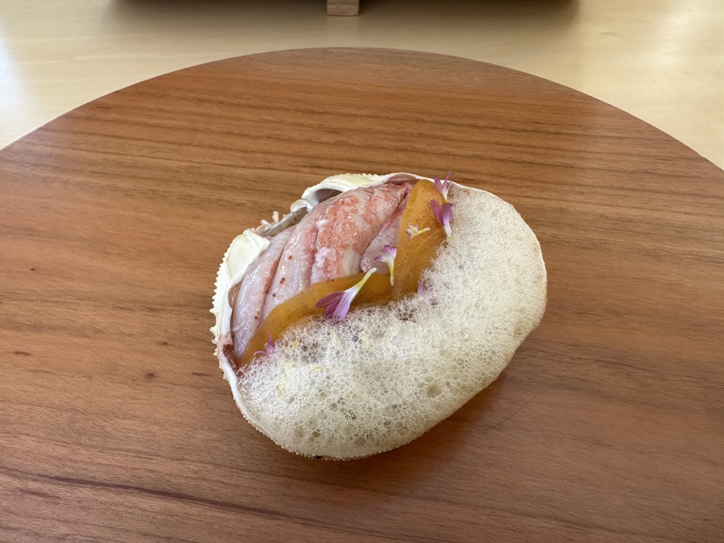 「柿・檸檬・加賀丸芋・トランペット茸」どれも唸るほど美味しかったのですが、香箱ガニがこんな美味しい食べ方があったんだ!と感動しました✨