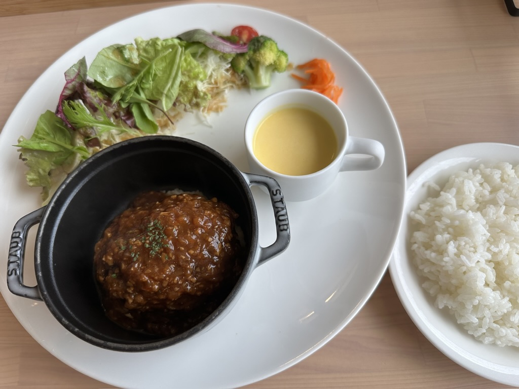 お食事も美しく盛り付けられていて、「シェフ特製! ハンバーグのココットランチ」は、ふっくらハンバーグに玉ねぎたっぷりソースがたまらない美味しさ😋