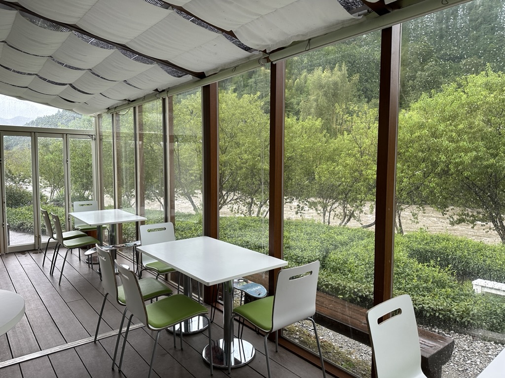Juli「池川茶園工房 Cafe」は、仁淀川の川沿いにあるお店で、間近に美しい清流を眺めながら、スイーツをいただけるんだけど、行った時は、台風で大荒れだったんだ😭