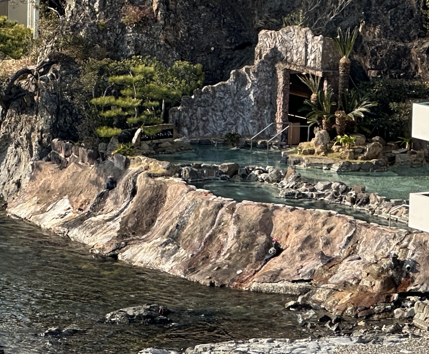 場所によって湯温も違うんだ。奥に洞窟風呂と、上には、寝湯もあるの!夜に星空を眺めながら入るのも良かったな〜。
