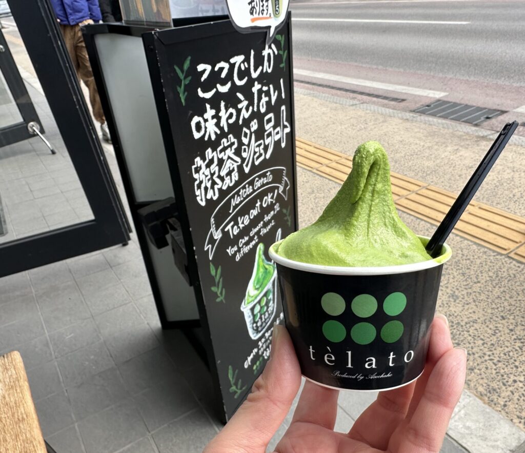 Juli「抹茶ジェラート専門店 telato」は、抹茶の濃度によって1倍から5倍まで選べたり、ほうじ茶、玄米茶なんかもあるよ!