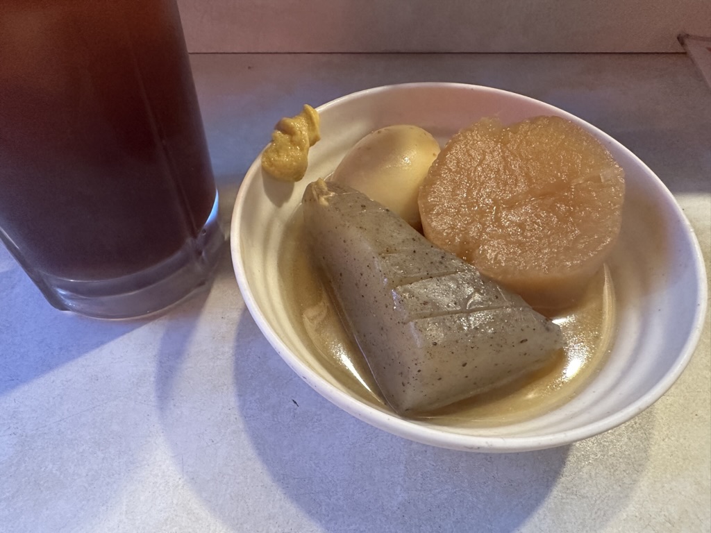 甘めの出汁で、辛子蓮根も初めて食べましたが、シャキシャキ感がとっても美味しい😋