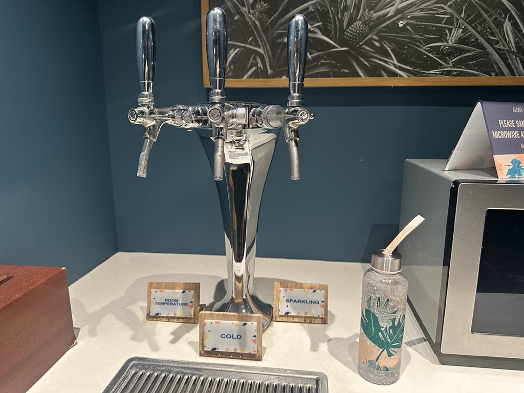 フィットネスジムの前にお水のコーナーがあって、お水や炭酸水なんかを入れられます。