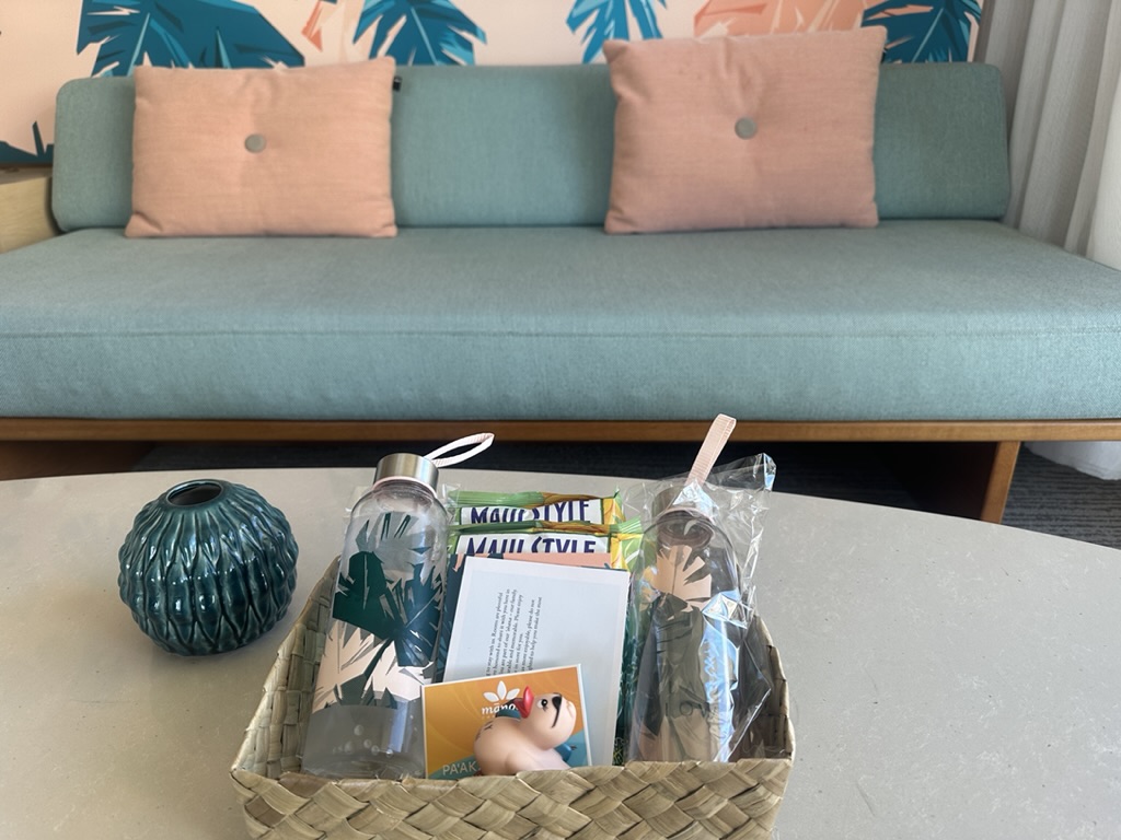 アクティビティやライブ演奏などは、他のホテルでも良くありますが、このホテルならではの特典が「エ コモマイ」のウェルカムバスケット♫