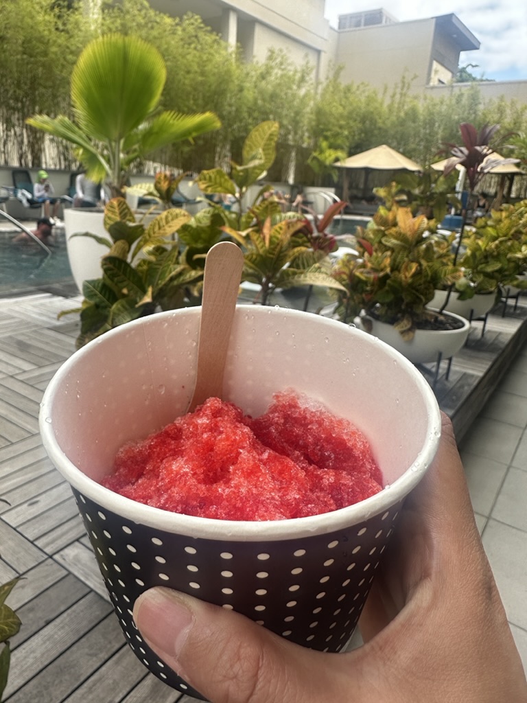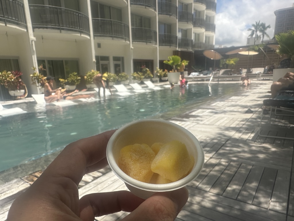 プールサイドで配っていたフローズンフルーツは、パイナップルでした。