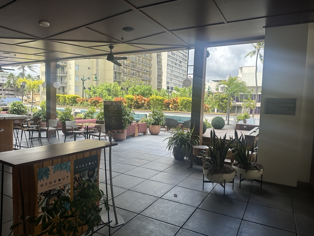 ロビーはそんなに広くないですが、すぐ横にオープンエアーのレストラン「Hideout」があって、開放的な雰囲気です。