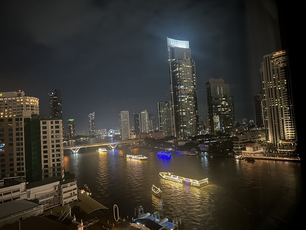 夜は、チャオプラヤー川に華やかなクルーズ船が沢山。