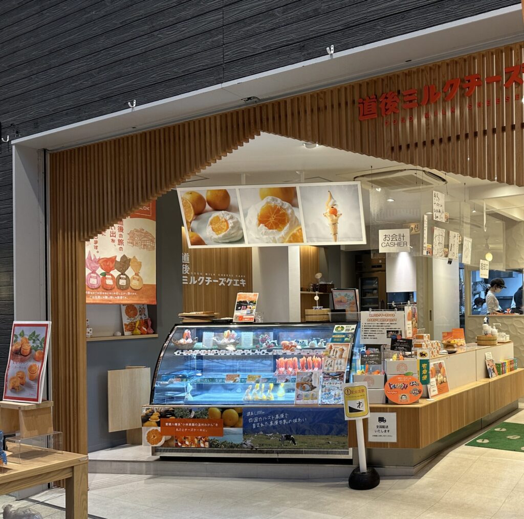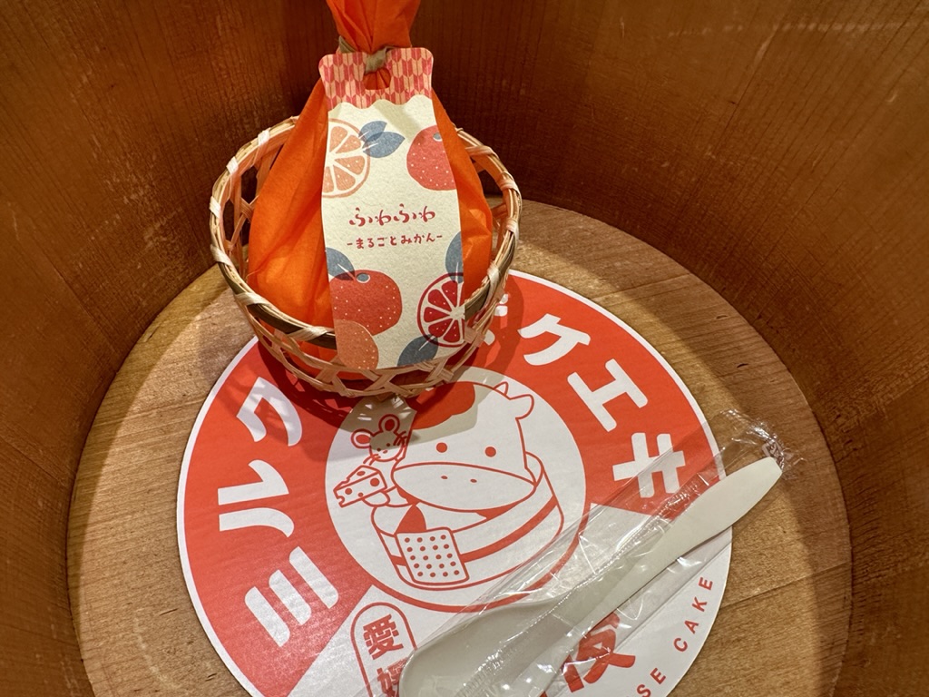 Juli「道後ミルクチーズケーキ」は、ふわっふわのミルクチーズケーキに丸ごとみかんが入っていて、とっても美味しいんだ♫ 店内も可愛い💕