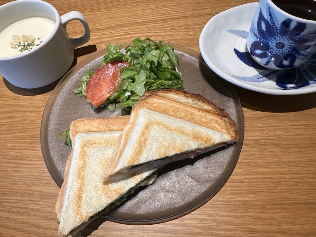 モーニングがやっていた時は、スープにハム&チーズのホットサンド、珈琲がセットになっていました!