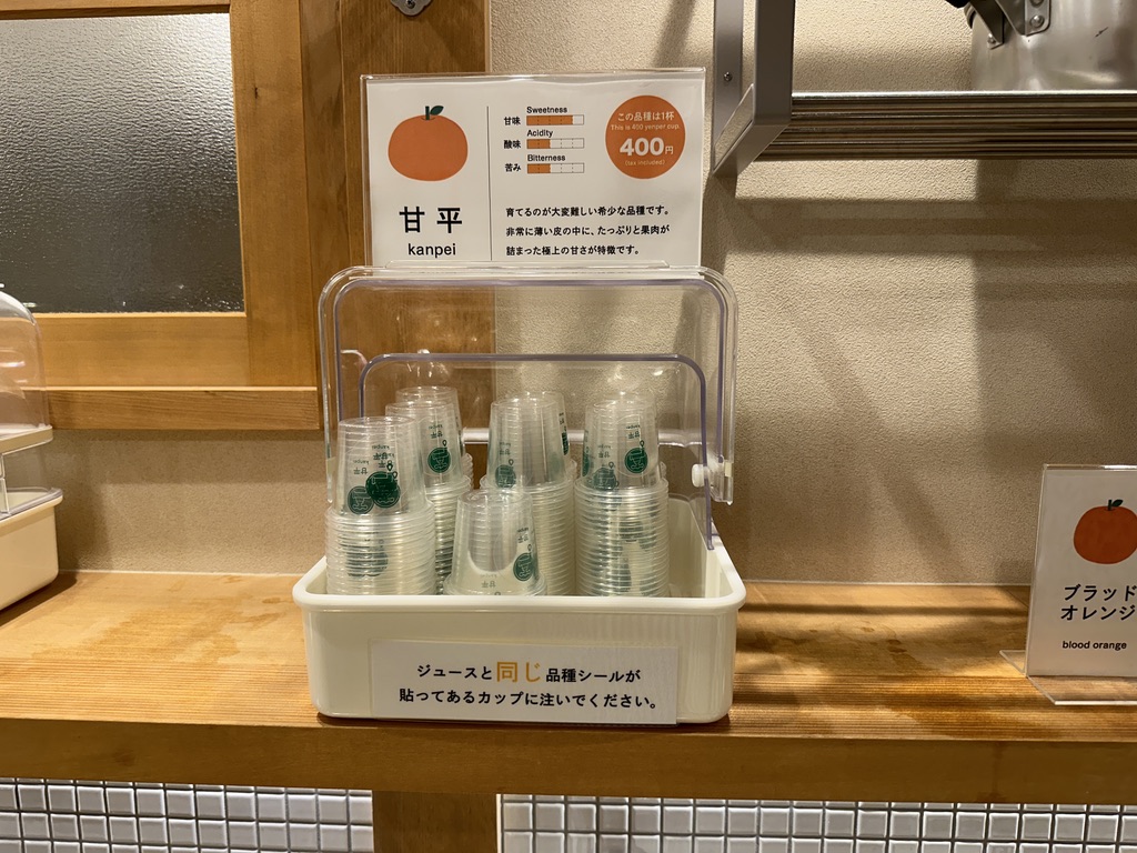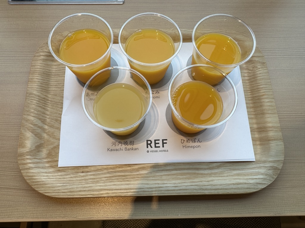 季節によって、並ぶみかんの種類は違うと思いますが、5種類のみかんジュースを飲み比べできました♫
