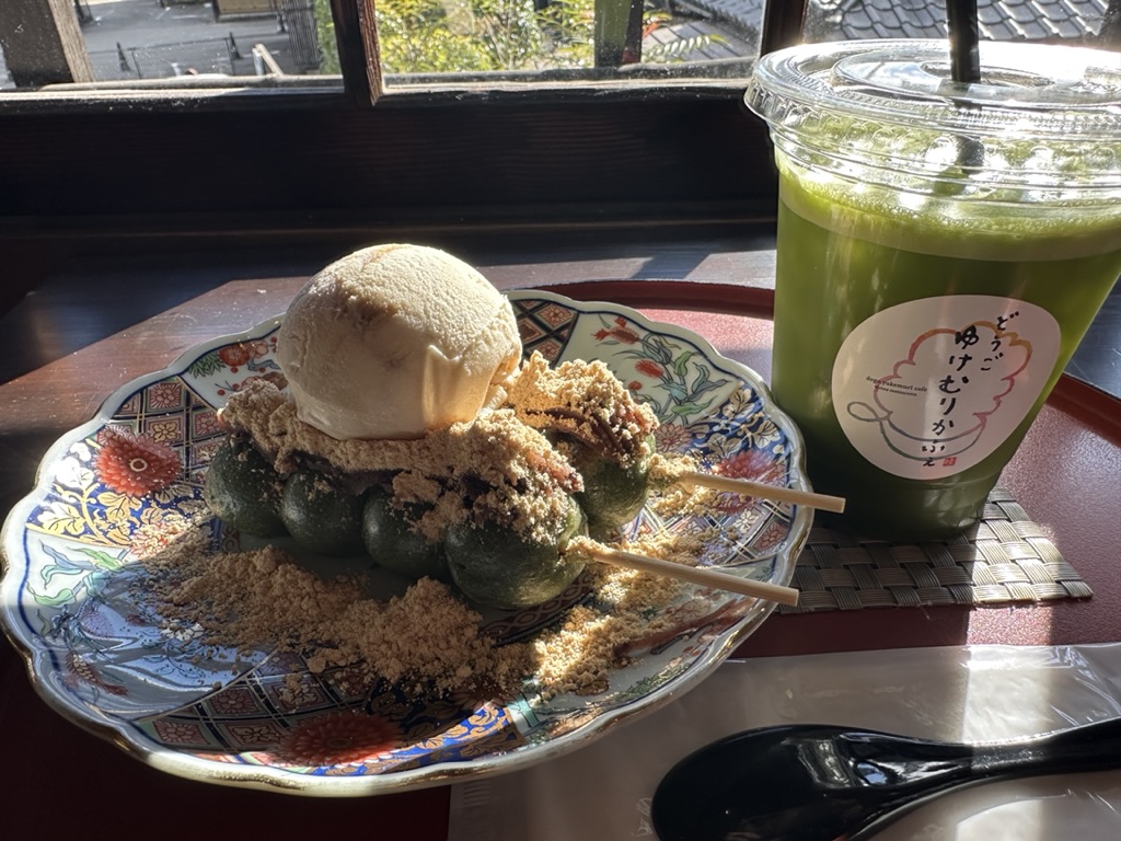 Juli「どうごゆけむりかふぇ」は、大正時代に建てられた「久保家の離れ」で有形登録文化財に指定されている歴史ある建物なんだ!可愛い米粉のお団子が美味しいんだよね😍