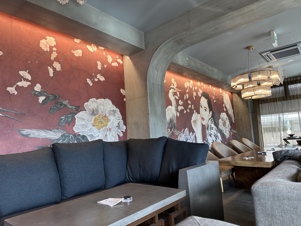 店内の巨大な壁画には、夏目漱石「坊っちゃん」主人公の1人マドンナと道後温泉で傷を癒したという逸話で知られる白鷺が描かれている、とってもお洒落なカフェ。