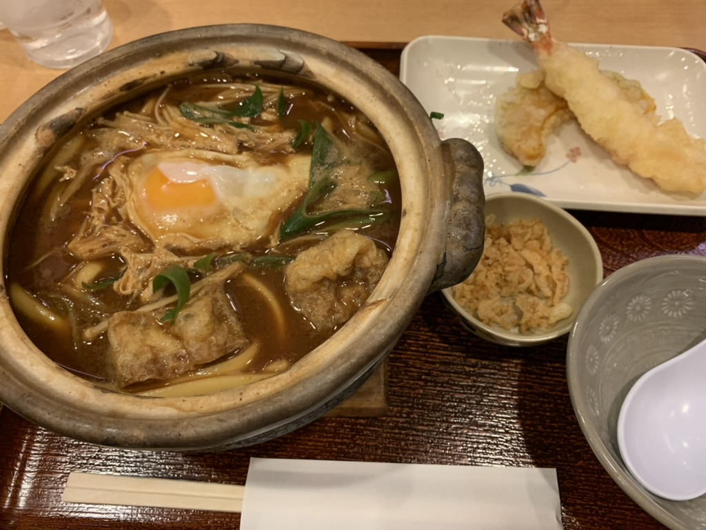 きしめんのお店なので、迷いましたが、味噌煮込みうどんも名古屋名物なので、味噌煮込みうどんにしました♫