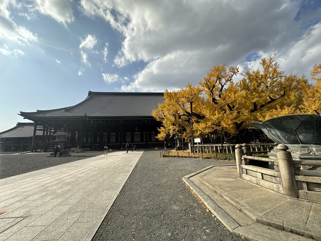大銀杏とのコントラストが美しい御影堂。時間がなかったので、中には入りませんでしたが、煌びやかな装飾がされてます。