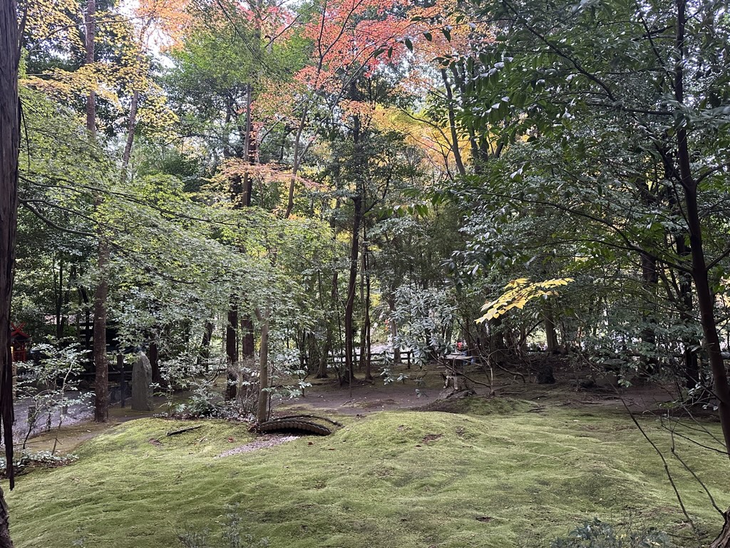 「じゅうたん苔」の庭にグラデーションの紅葉が美しさを助長していて、陽の当たり方により神秘的な雰囲気を醸し出していました。