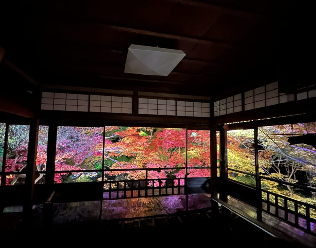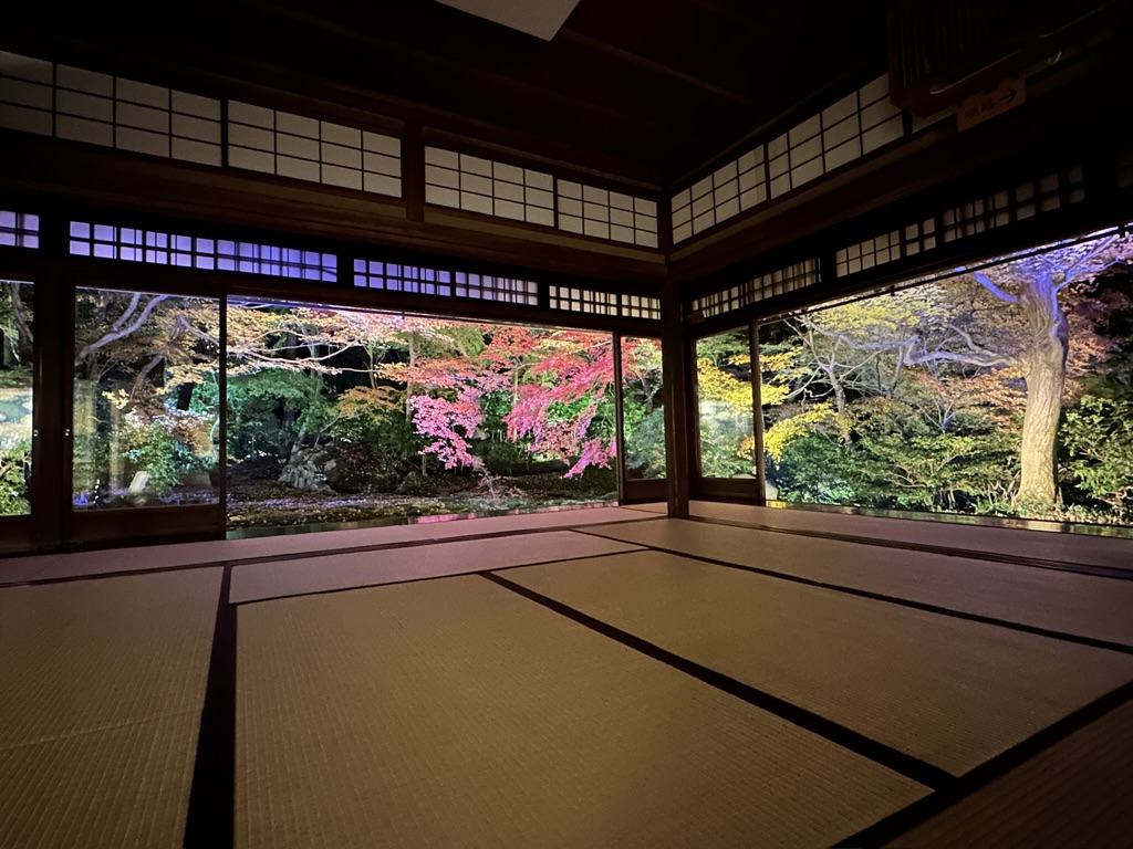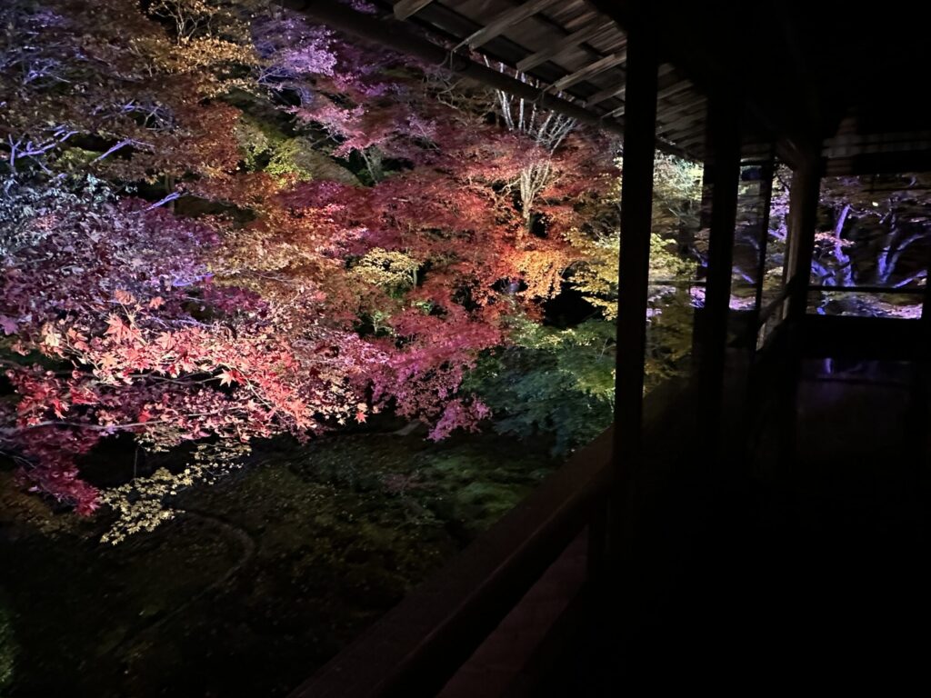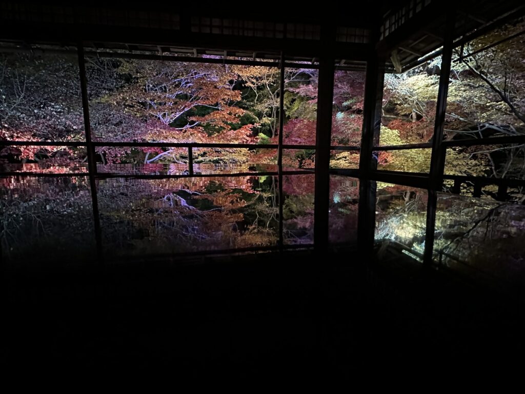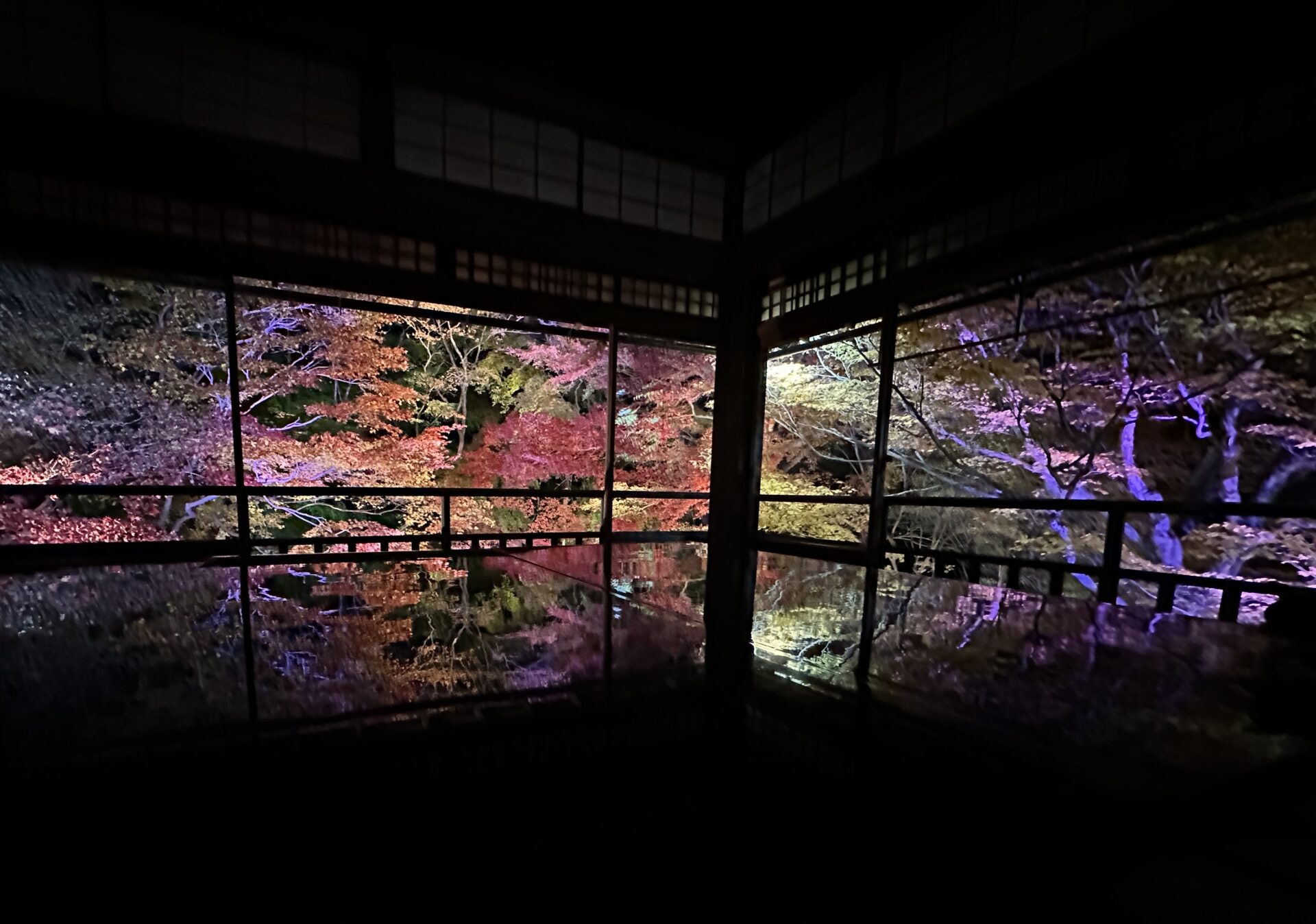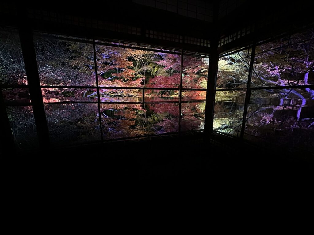 ライトアップされた彩り豊かな紅葉が床や机にリフレクションするやつ!