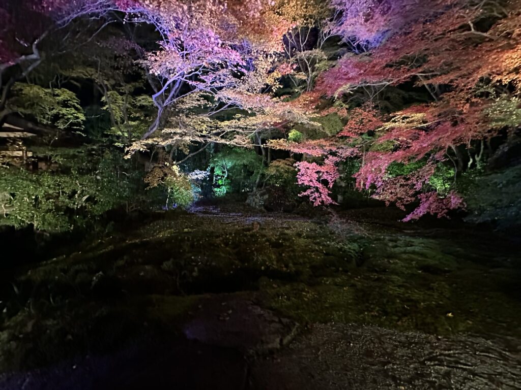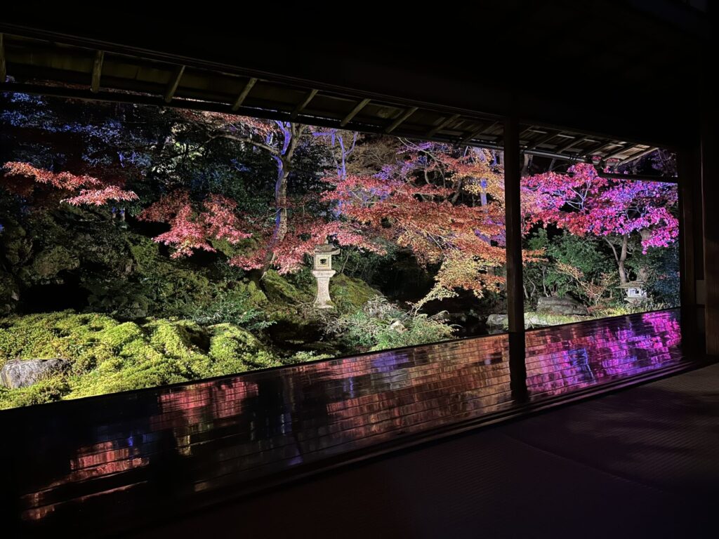 昼間だと苔で覆われた庭が美しいのですが、夜はあまり分かりませんでした。