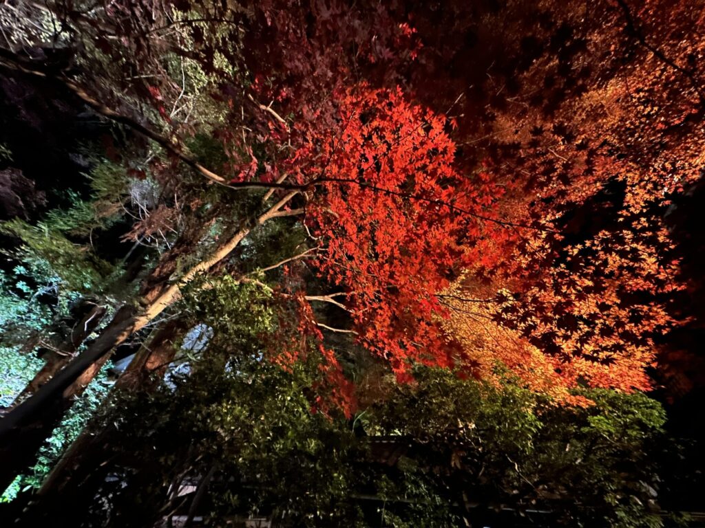 紅葉した木々がライトアップされて迫力あります🍁