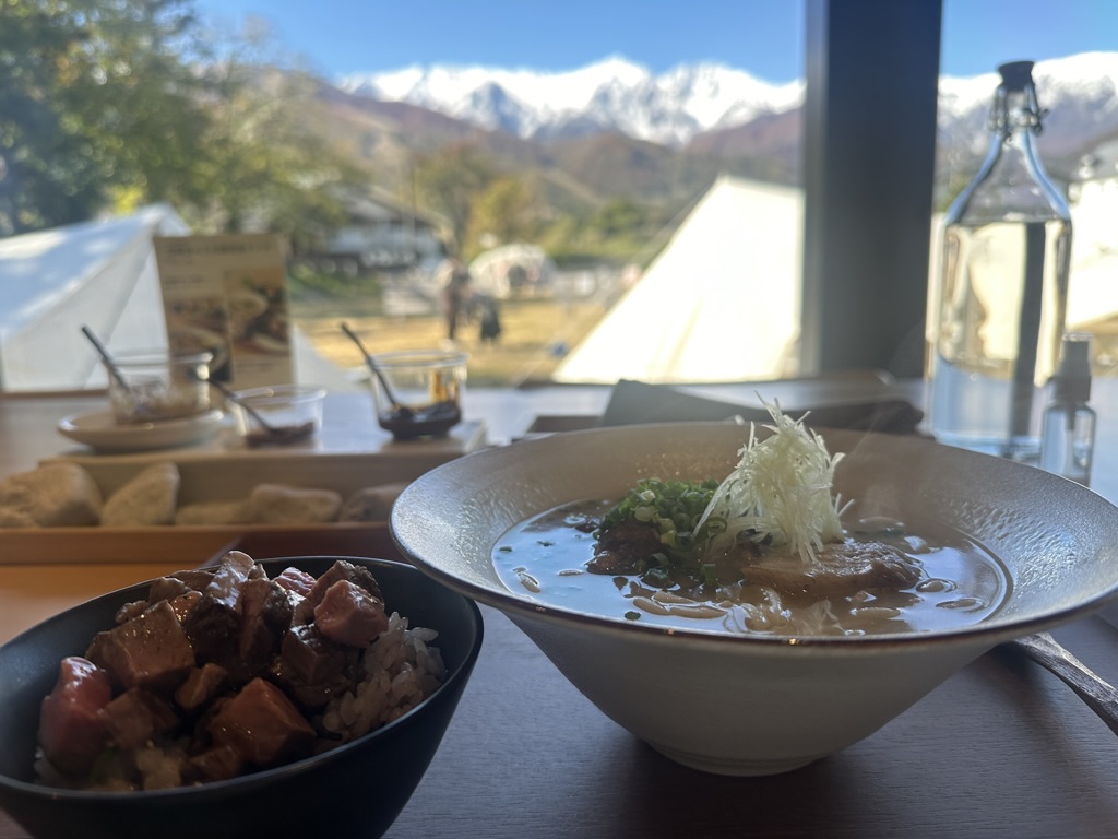 北アルプスを眺めながら、いただく食事はより一層美味しい!