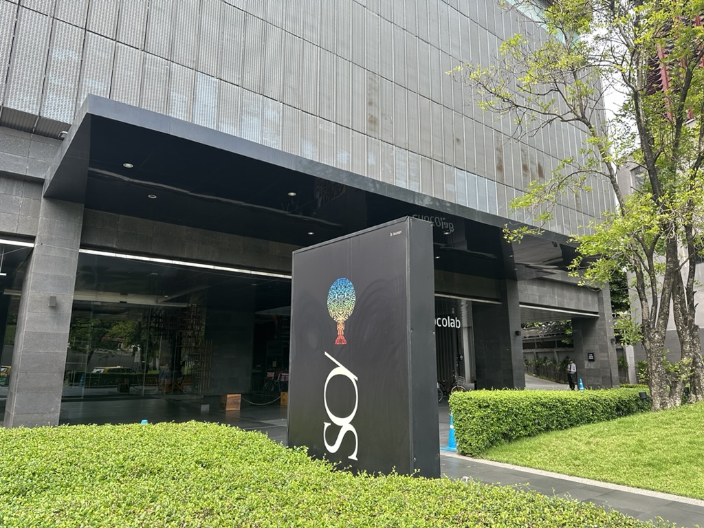 巨大な広告が印象的なスタイリッシュなビルにSO/ Bangkokホテルが入ってます。