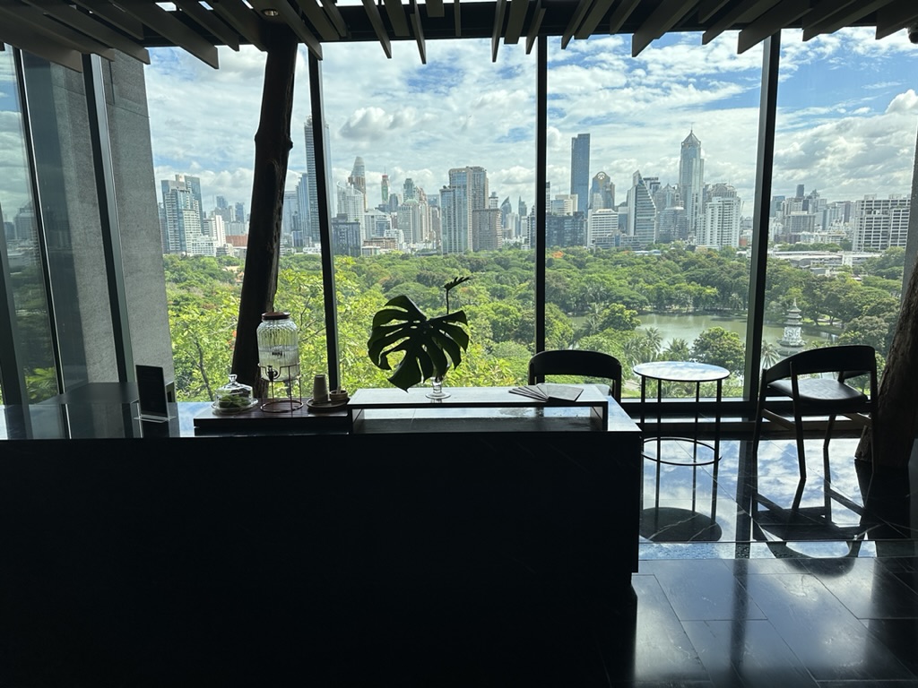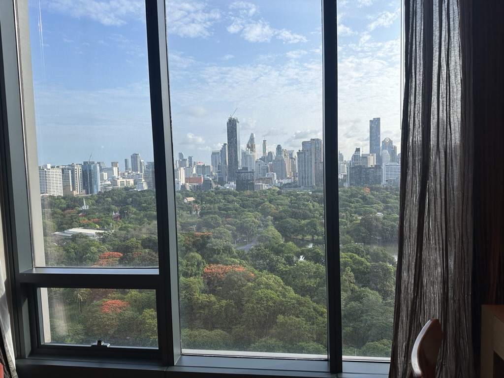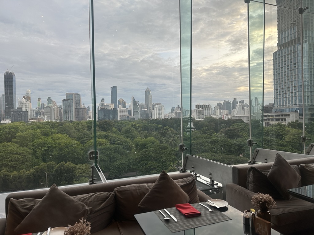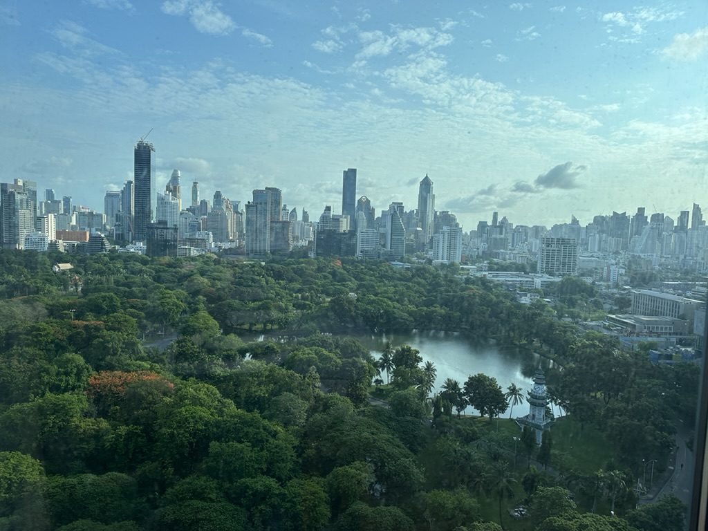 目の前のルンピニ公園とビル群のコントラストは、どこから見ても圧巻でお部屋でもずっと見ていられるのが嬉しい!